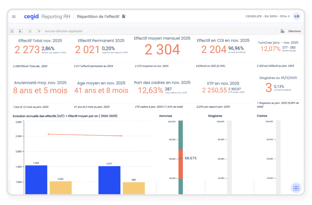 Cegid Payroll Ultimate intègre des fonctionnalités de reporting avancées qui simplifie votre bilan social et vous permet de prendre des décisions éclairées.